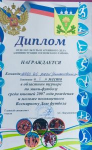 19 ноября в спортивном зале МБОУ ДО «ДЮСШ» прошло первенство района по мини-футболу среди учащихся 2009 года и моложе, 2007-2008 г.р. в рамках Всероссийской акции «Я выбираю спорт, как альтернатива пагубным привычкам»